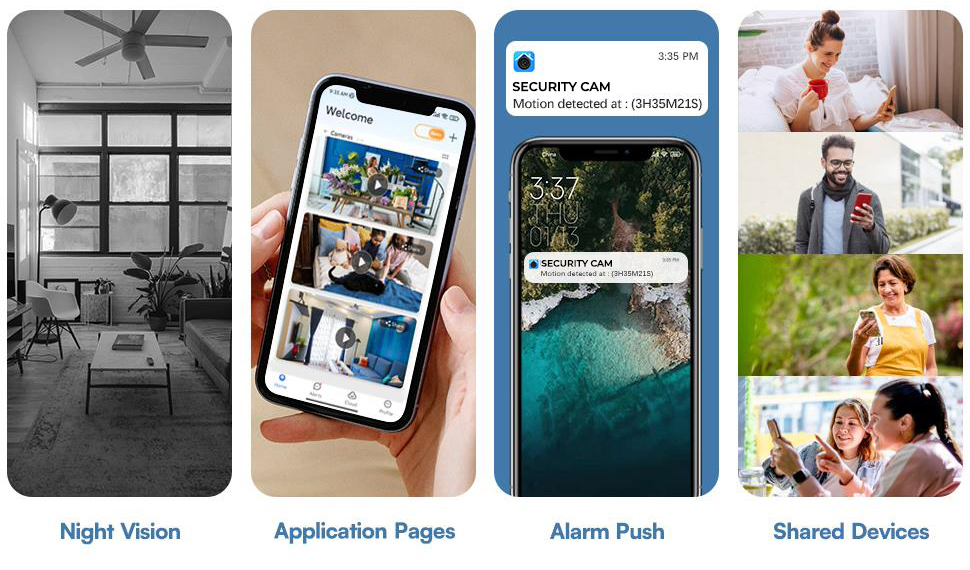 Sentry Vision security camera allows remote control via your smartphone anywhere, anytime! It would record videos automatically when detecting motion. Alert notifications will be quickly pushed to your mobile phone, helping you keep your home safe in time.